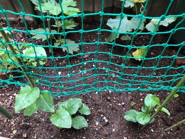 ゴーヤは、小っちゃな実ができ始めたけど収穫には至らず。