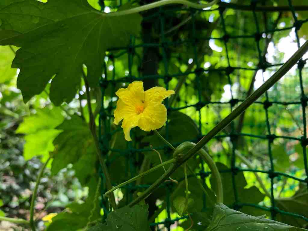 ↓雌花(黄色い花の下に膨らみありこれがゴーヤに)