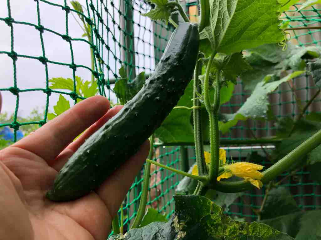一番最初に採れたのはキュウリでした。